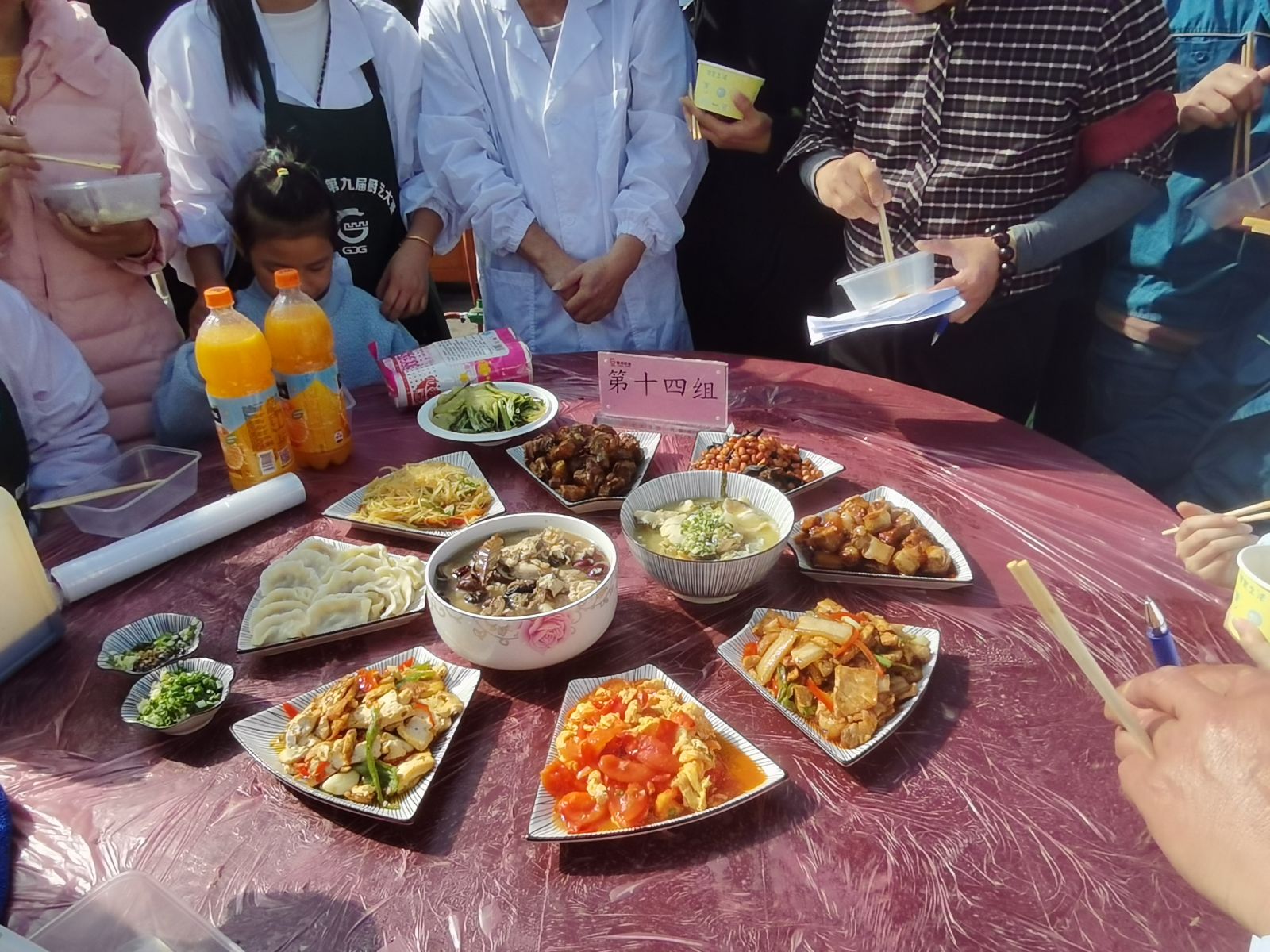本次大賽要求在規(guī)定時間內(nèi)完成10道菜(五葷五素)和200只餃子。上午八點,各大廚早早趕到比賽現(xiàn)場,隨著主持人一聲令下,廚藝大賽正式開始。大廚們大顯身手,各顯神通,個個刀工嫻熟,技藝精湛,充分展示自己的廚藝技術,隨著時間的逐步推進,一道道色澤鮮艷、葷素搭配的菜肴被端上桌席,進入大眾和評委的眼簾。他們獨特的創(chuàng)意、精致的造型、嫻熟的技藝,贏得了評委和員工們的連連稱贊。
